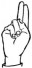 На ћирилици написано БЕРИША ВАСИЋ састоји се из 11 слова [?]. Исписано ћириличном једноручном азбуком за глувонеме: